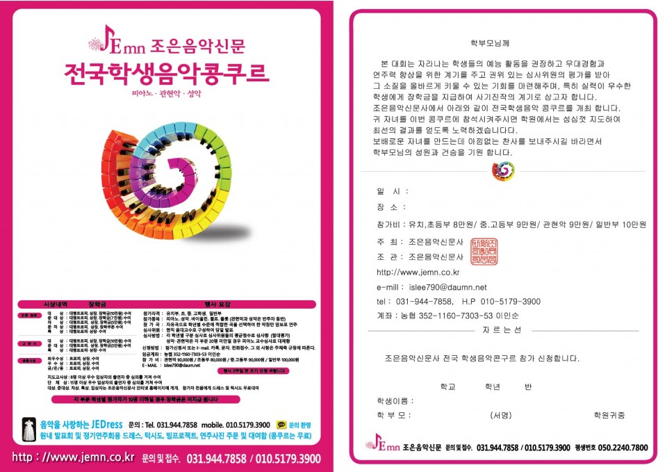 가정통신문 참가신청서 페이지 정보 작성자 jemncokr 작성일15-09-07 14:45 조회3,588회 댓글0건 이전글 다음글 목록 본문 가정으로 보내는 참가신청서 입니다 ^^ 댓글목록 등록된 댓글이 없습니다. 이전글 다음글 목록